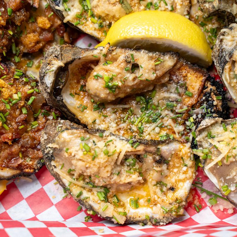 Rained parade day, but we consoled ourselves with some really great oysters. The duck boudin poppers were great too. The oysters were large, we had a half dozen of the lemon and the NO bar-b-que. Highly recommend!